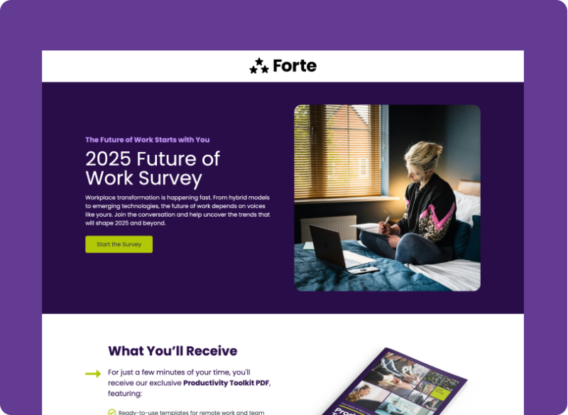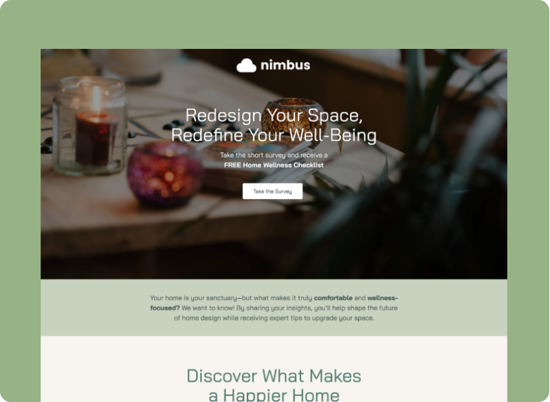 People love learning about themselves, especially when it’s easy and enjoyable. A Survey does just that—and a sleek, engaging landing page kicks the journey off.