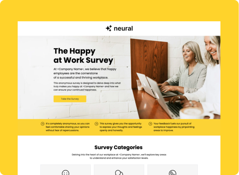 Measure your happiness and identify areas for improvement with the Happy at Work Survey.