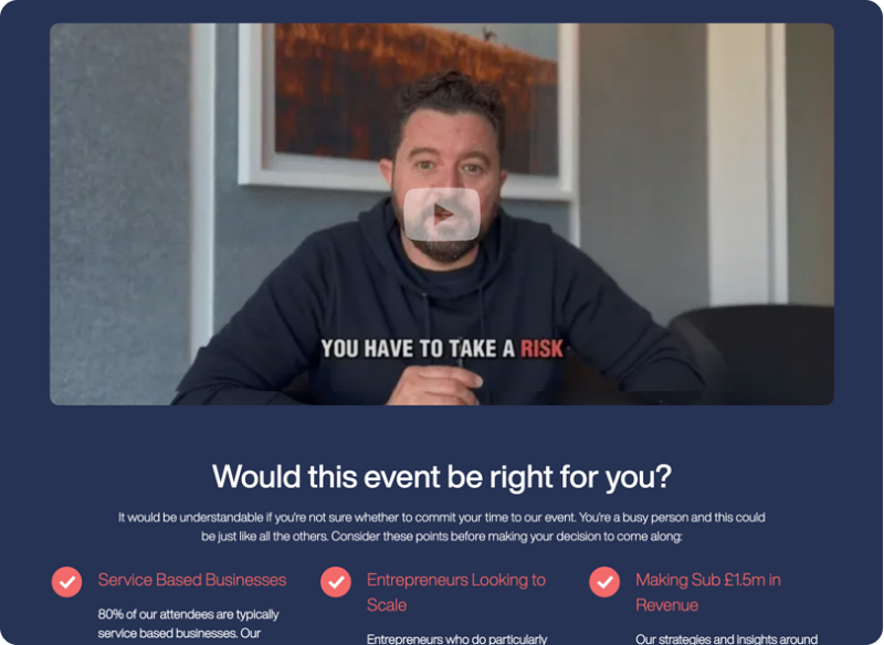 Use ScoreApp to promote and register attendees for your workshops or webinars, collecting insights before the event and using data to tailor your follow-up offers.